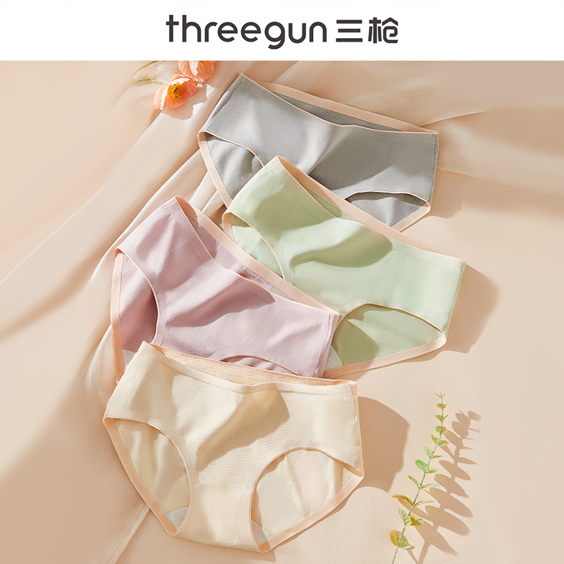 【产品名称:三枪纯棉内裤女士100%全棉抑菌裆中腰金边2023年秋冬新款三角短裤】