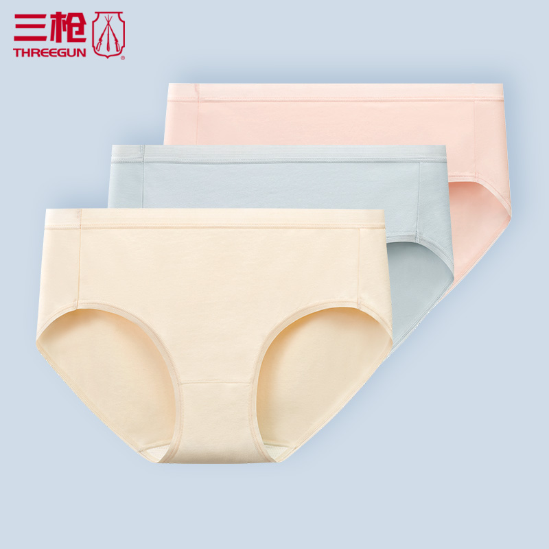 【产品名称:3条装 三枪中腰三角裤女 弹力棉女士三角裤纯色简约打底内裤40986】