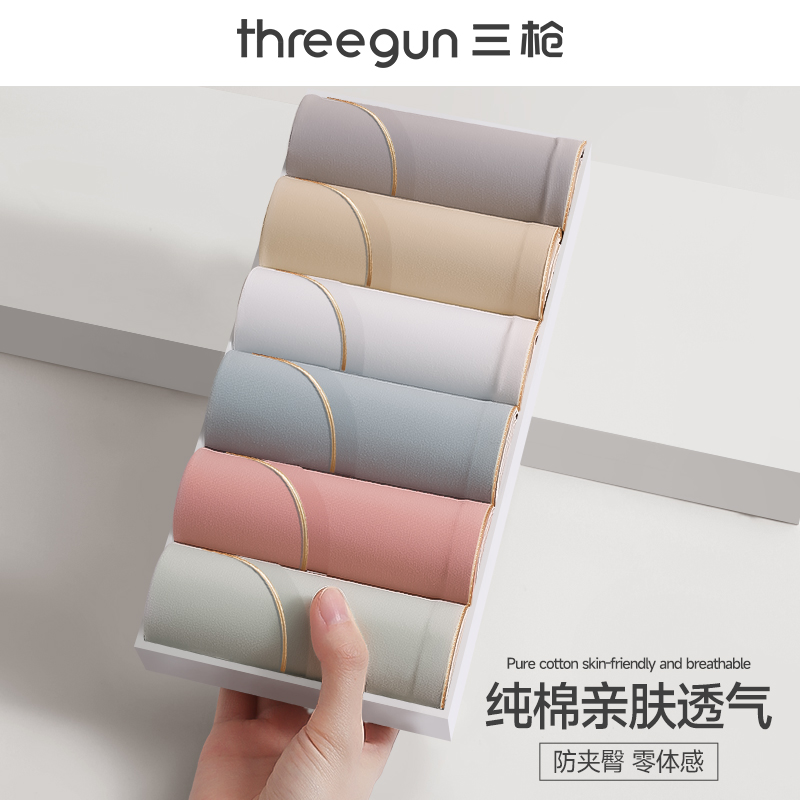 【产品名称:三枪内裤女士纯棉中腰无痕春秋新款全棉抑菌裆透气不夹臀女三角裤】