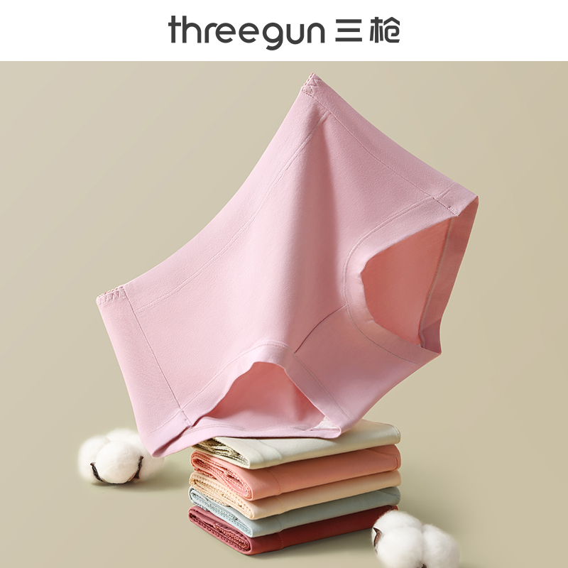 【产品名称:三枪纯棉女士内裤中腰收腹提臀女生亲肤透气三角短裤头桑蚕丝底裆】