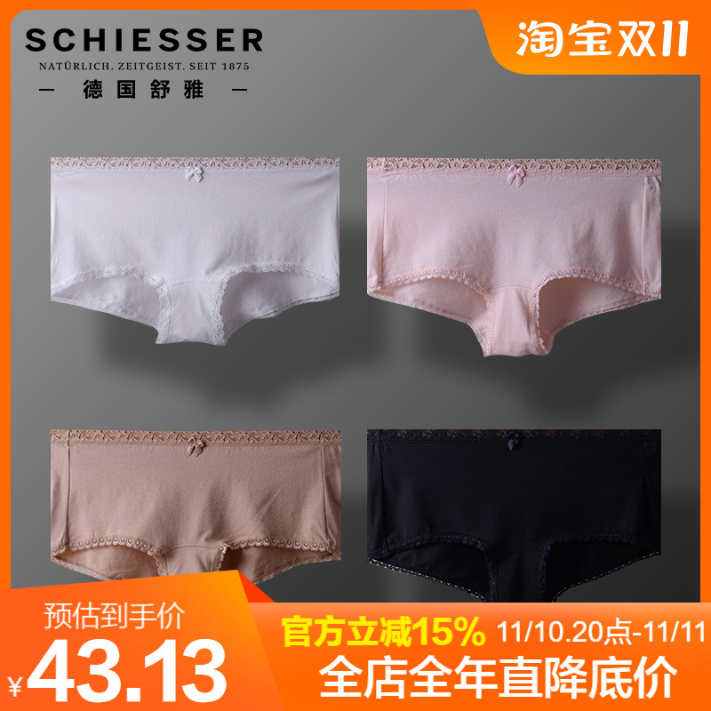 【产品名称:德国舒雅内裤女士 棉莫代尔蕾丝花边30/5540T 提臀高腰短裤平角裤】