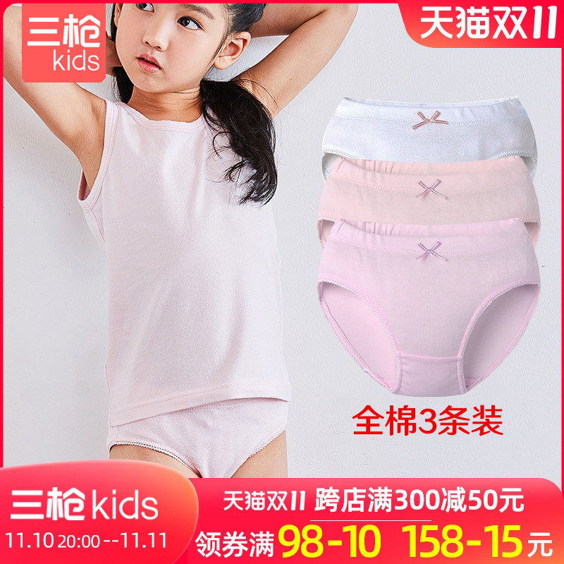 【产品名称:3枚装三枪女童内裤白色舞蹈裤儿童三角裤小孩全棉女士小码裤头】