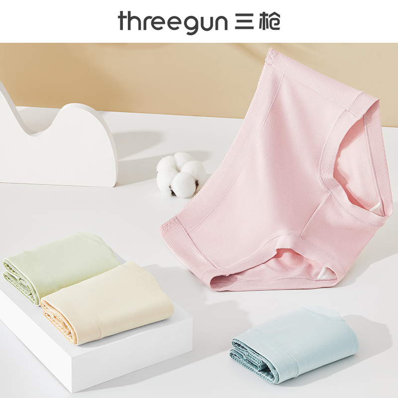 【产品名称:三枪纯棉内裤女中高腰长绒棉包臀抑菌透气女式秋季三角短裤头薄款】