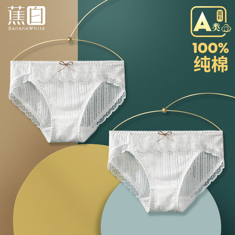 【产品名称:白色女士纯棉内裤100%全棉平角裤日系可爱女学生中低腰蕾丝三角裤】