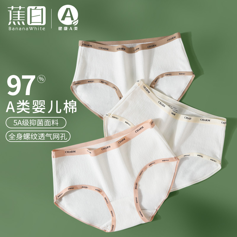 【产品名称:白色内裤女士纯棉无痕三角裤头中腰包臀不夹PP日系小清新平角短裤】