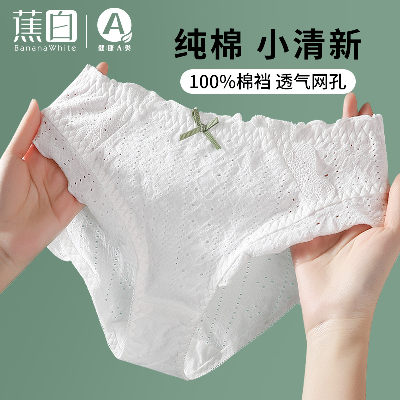 【产品名称:白色纯棉女士平角内裤100%全棉裆少女纯欲性感中腰包臀三角裤头薄】