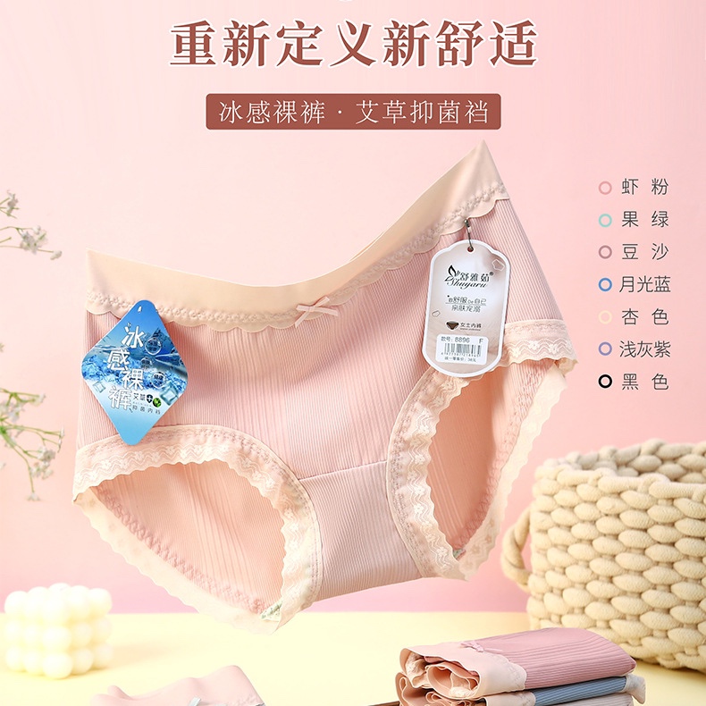 舒雅茹8896锦纶冰丝提花无痕中腰女士三角内裤艾草抑菌底裆包邮