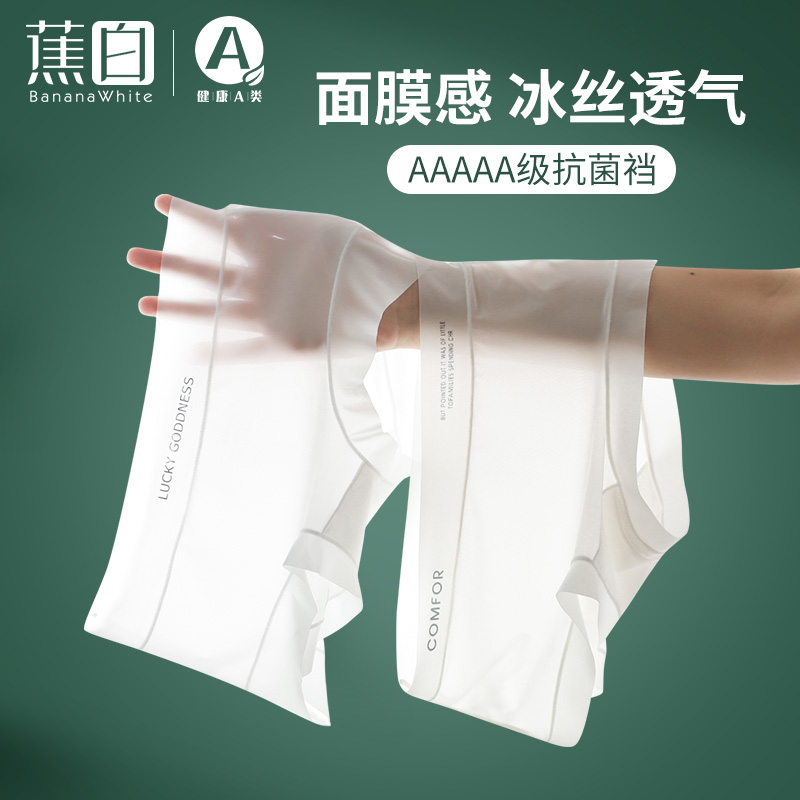 【产品名称:白色女士内裤冰丝轻透薄款面膜感三角裤透气夏季包臀小平角短裤头】