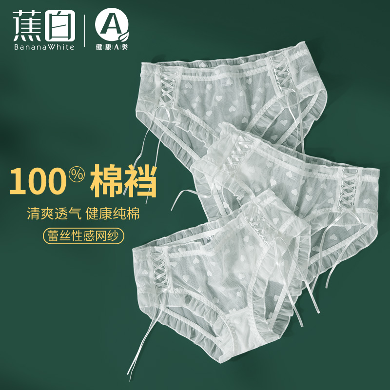 【产品名称:白色女士内裤网纱纯欲三角裤女生蕾丝系带透气轻薄小平角底裤夏季】