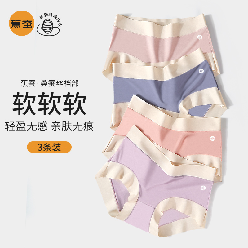 【产品名称:女士内裤平角无痕轻薄无感桑蚕丝底裆吸湿透气夏季冰丝款短裤底裤】
