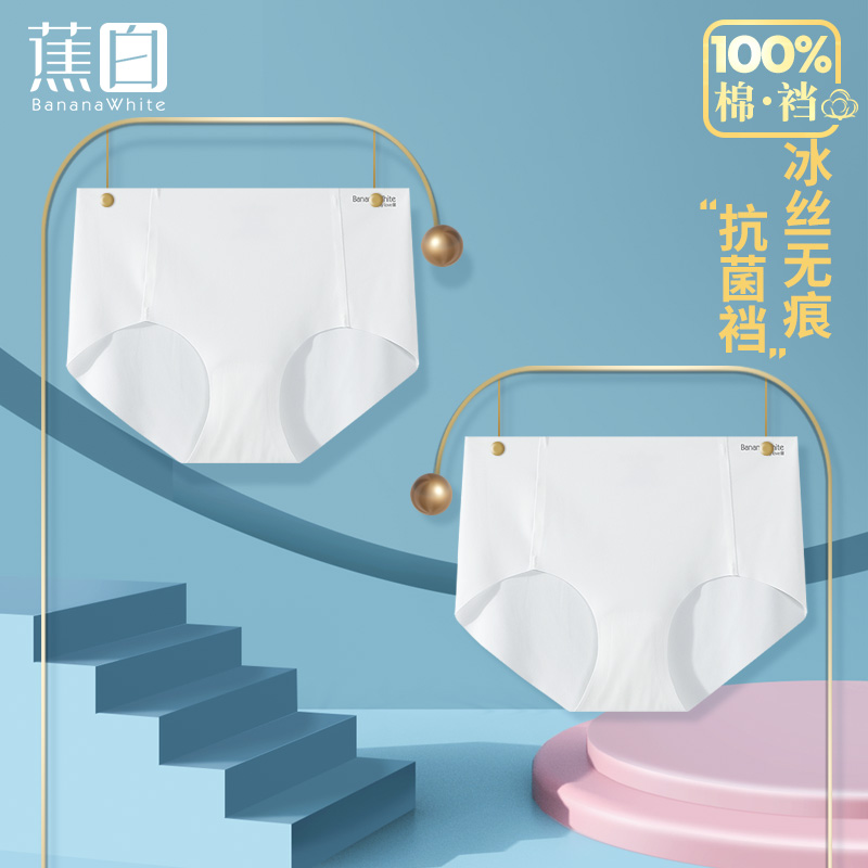 【产品名称:白色冰丝夏季无痕女士内裤纯棉抗菌裆透气大码包臀性感浅色三角裤】