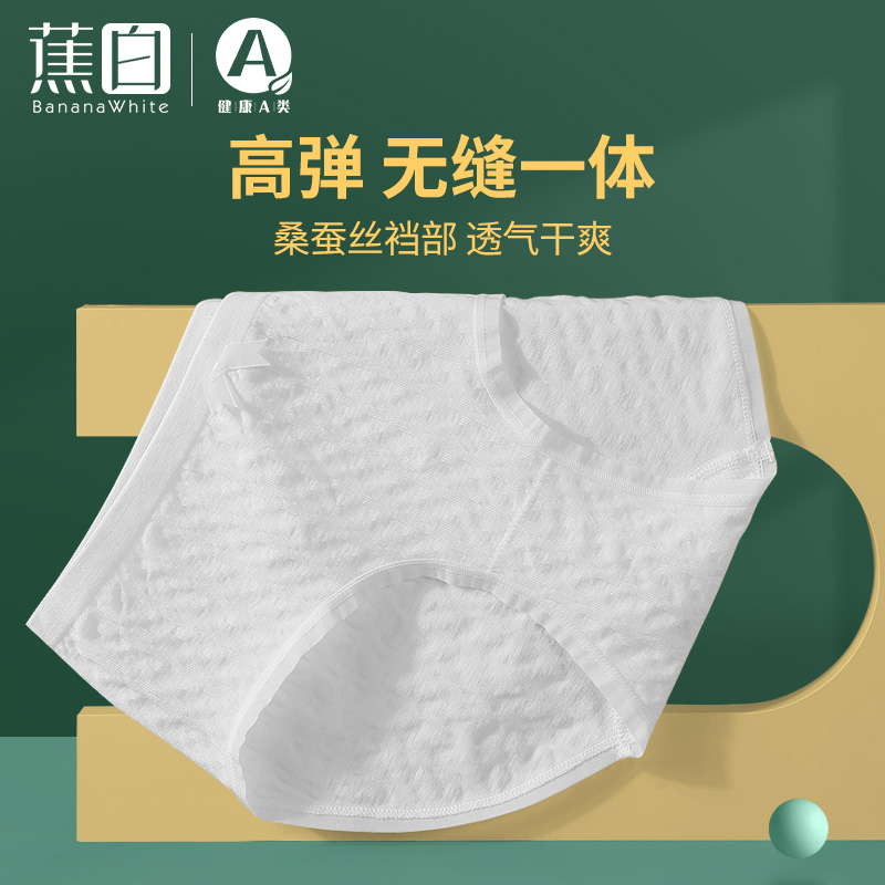 【产品名称:纯白色女士平角内裤一体无缝冰丝感蚕丝裆中腰包臀日系无码三角裤】