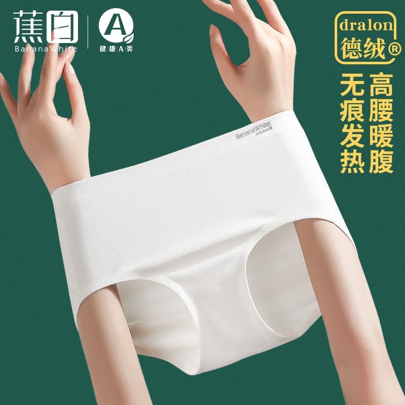 【产品名称:白色无痕德绒保暖内裤女士100%纯棉裆发热高腰收腹包臀日系平角裤】