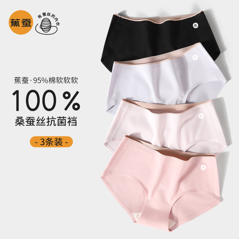 【产品名称:女士内裤新款性感无痕纯棉中腰100%桑蚕丝抗菌裆夏天薄款三角短裤】