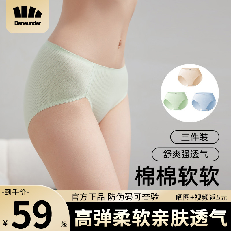 【产品名称:蕉下棉质内裤夏季薄款抗菌女士无痕中腰性感透气纯棉底裆三角内裤】