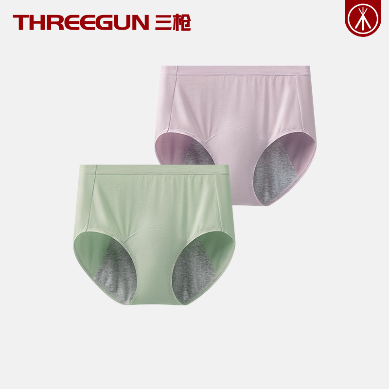 【产品名称:THREEGUN/三枪女士莫代尔中高腰生理裤青年三角内裤暖宫收腹抗菌】
