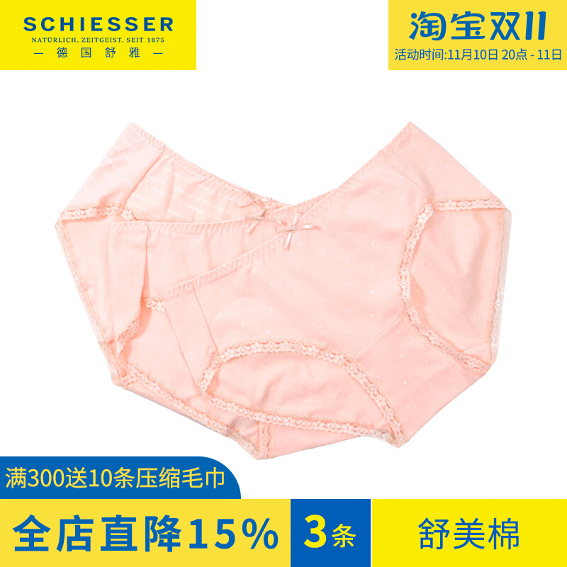 【产品名称:3条 德国舒雅内裤女士纯棉三角裤中腰女生舒美棉蕾丝边夏薄16047S】