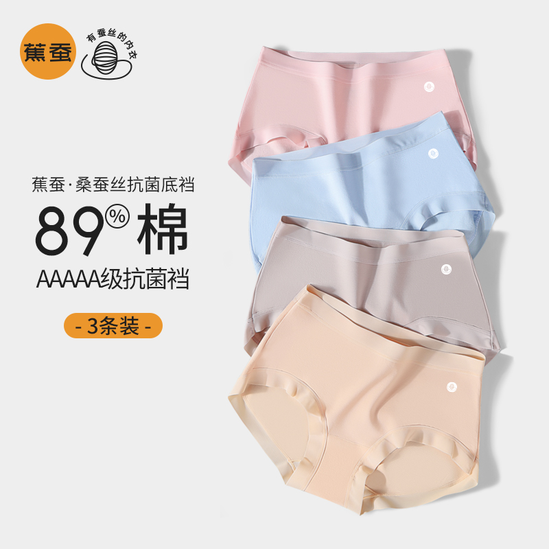【产品名称:女士内裤平角无痕短裤防走光桑蚕丝5a抗菌裆中腰薄款柔棉三角底裤】