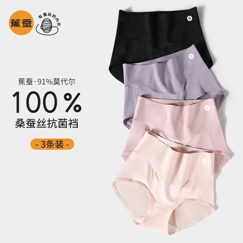 【产品名称:高腰莫代尔女士内裤100%桑蚕丝底裆抗菌夏季薄款冰丝无痕包臀短裤】