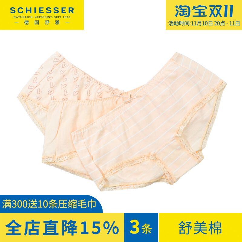 【产品名称:3条 德国舒雅内裤女士纯棉平角裤简约小高腰舒美棉女生内裤15580T】