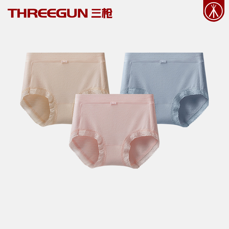 【产品名称:THREEGUN/三枪女士中腰三角裤少女冰感顺滑生理裤学生精梳棉内裤】