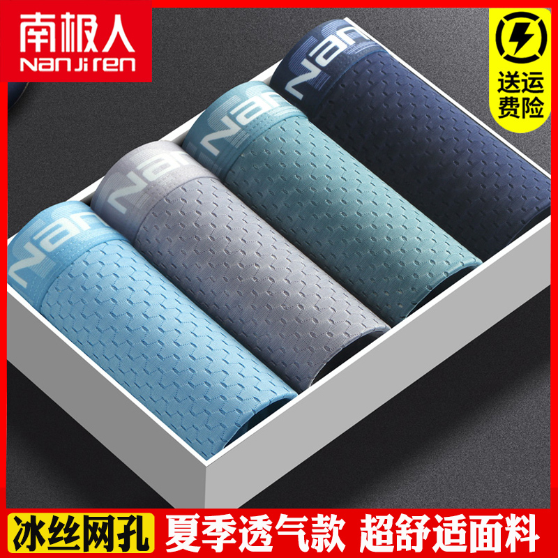 【产品名称:南极人内裤男冰丝平角裤男士中腰抗菌网孔透气四角短裤头夏季薄款】