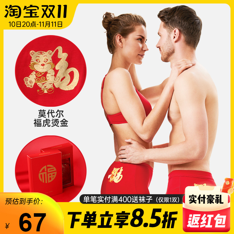 【产品名称:舒雅大红色内裤男女士本命年属虎生肖裤莫代尔平角三角裤鸿运喜庆】