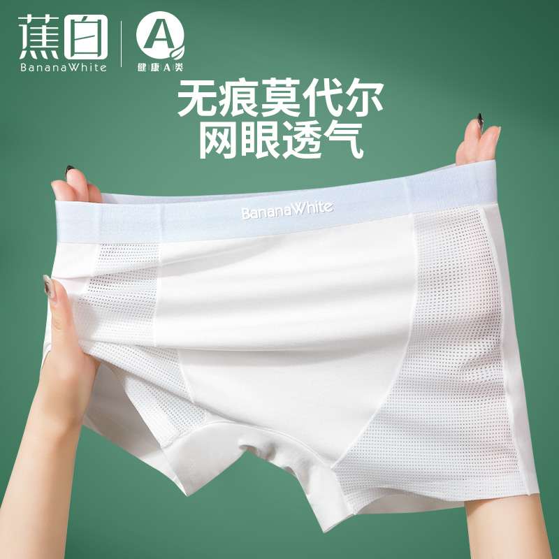 【产品名称:白色女士内裤防走光安全裤冰丝无痕莫代尔平角网眼透气打底短裤头】