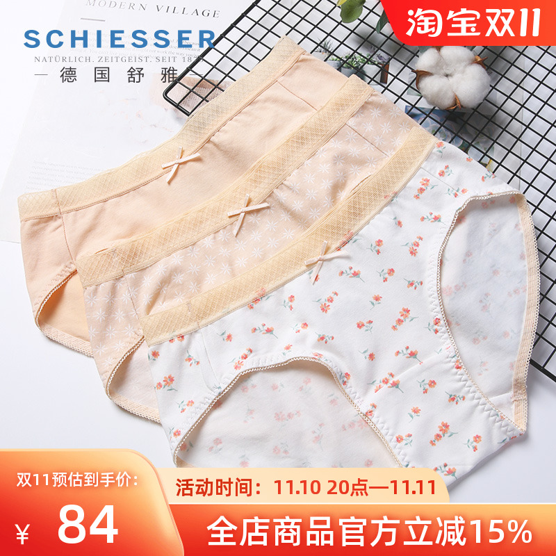 【产品名称:3条装 春夏新品德国舒雅女士纯棉内裤夏季薄棉印花蕾丝中腰三角裤】