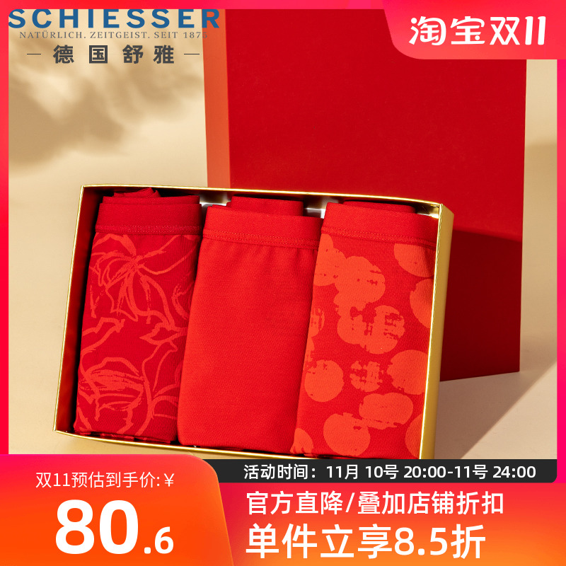 【产品名称:3条装舒雅女士舒美棉内裤23秋冬新款新年大红鸿运平角裤E1-21872T】