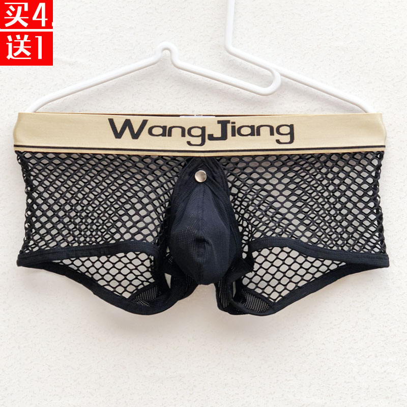 【产品名称:男士内裤平角裤男 网纱性感镂空青年平角裤低腰U凸内置吊环 透明】