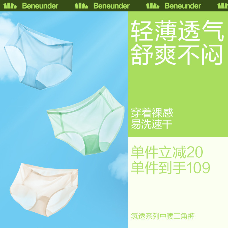 【产品名称:蕉下女士情侣冰丝内裤夏季薄款无痕中腰性感透气纯棉裆中腰 2条装】