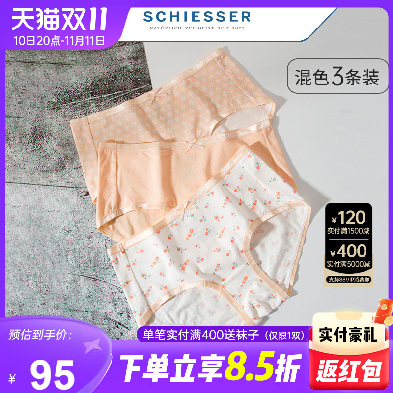 【产品名称:3条装schiesser舒雅女士内裤薄款透气纯棉印花透气中腰平角短裤女】