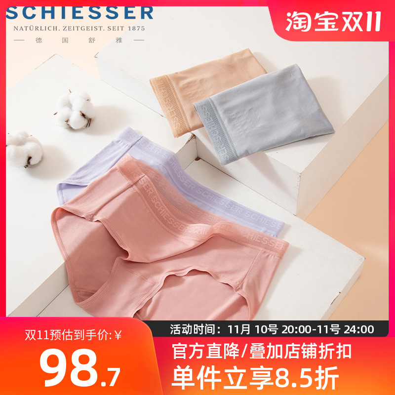 【产品名称:3条装舒雅内裤女士夏季无痕莫代尔平角蕾丝中腰大码透气三角裤】