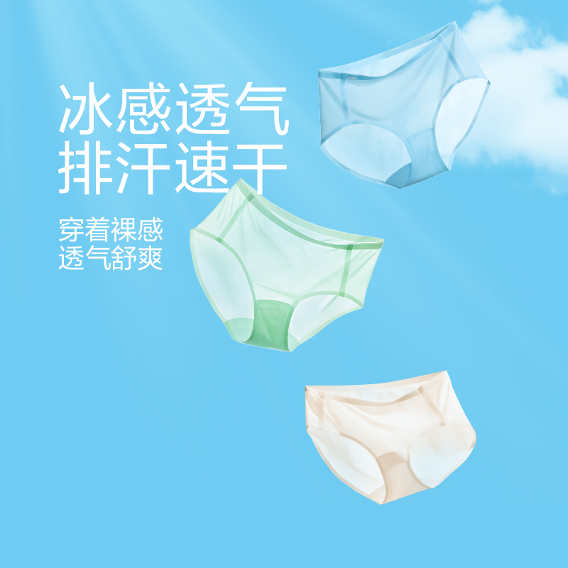 【产品名称:2条装 蕉下氢透系列女士中腰内裤性感超薄透气高弹纯棉裆三角内裤】