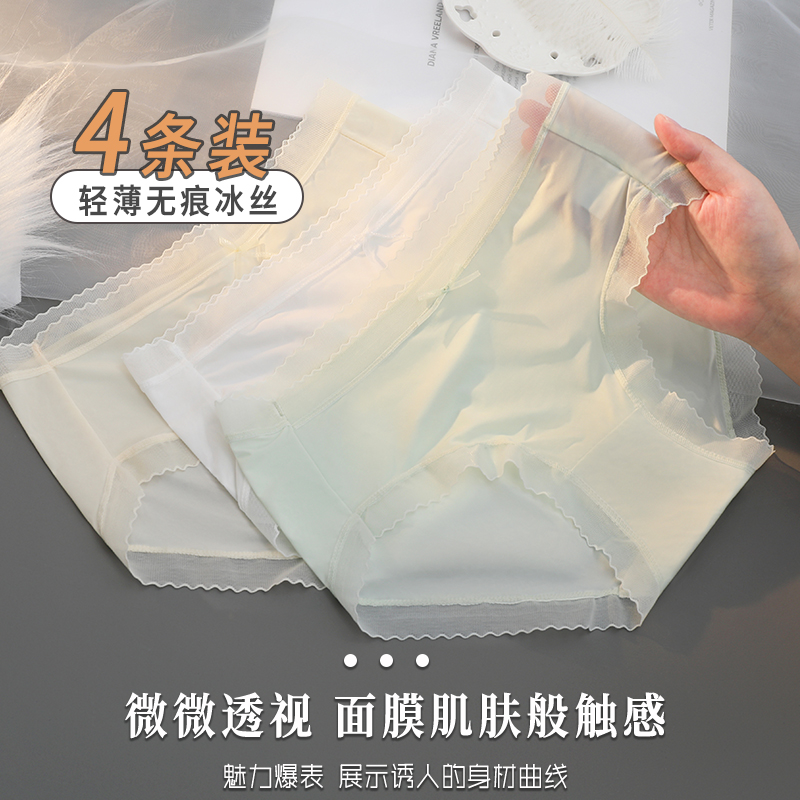 【产品名称:迪蕉女士内裤女冰丝无痕夏季薄款纯棉100%全棉抗菌裆中腰透气】