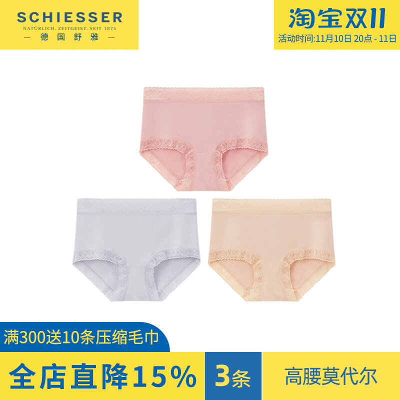 【产品名称:3条 新款舒雅内裤女士80S莫代尔平角裤高腰短裤桑蚕丝抗菌20058T】