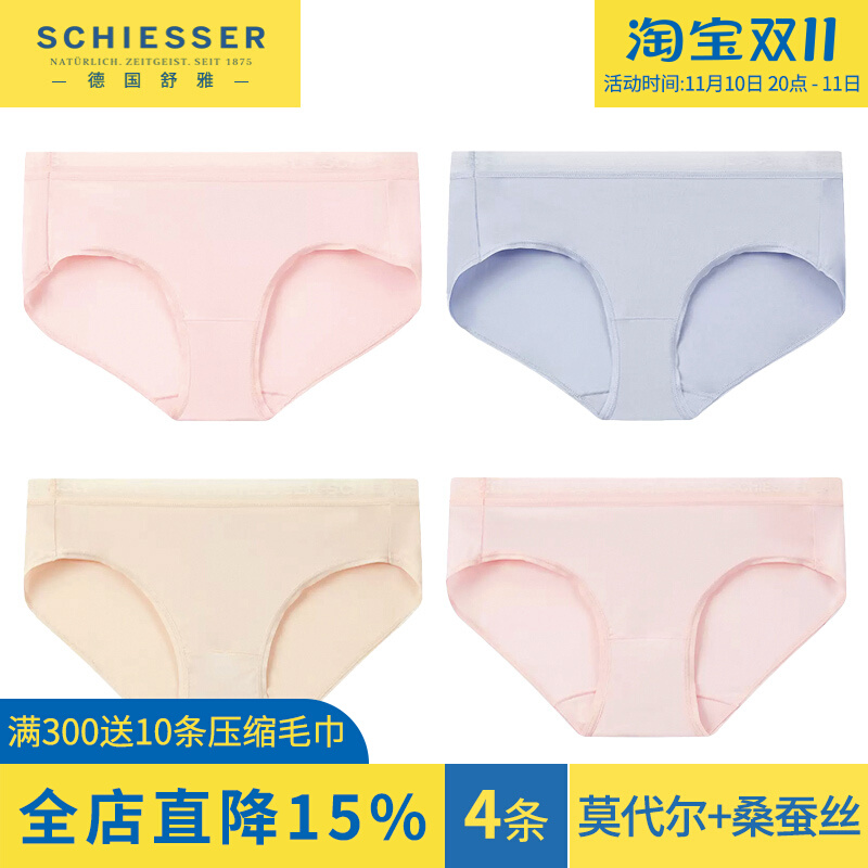 【产品名称:4条装 德国舒雅内裤女士莫代尔三角裤桑蚕丝抗菌平角裤中腰星期裤】