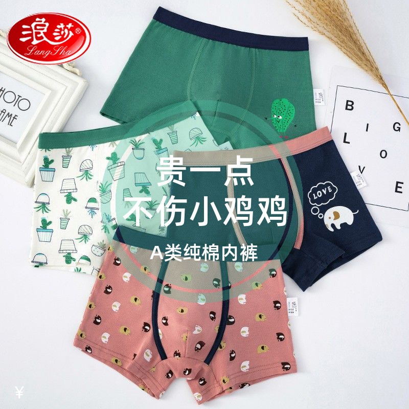 【产品名称:浪莎儿童纯棉内裤男童小童全棉四角平角短裤小学男孩中大童四季款】