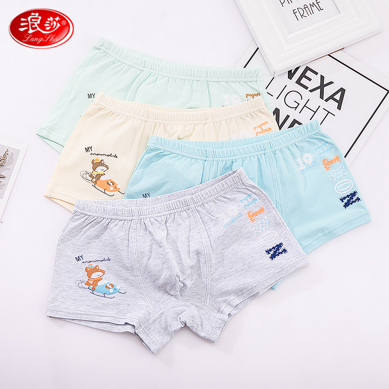 【产品名称:4条浪莎儿童内裤平角裤男童棉四角裤男孩小童中大童莫代尔棉短裤】