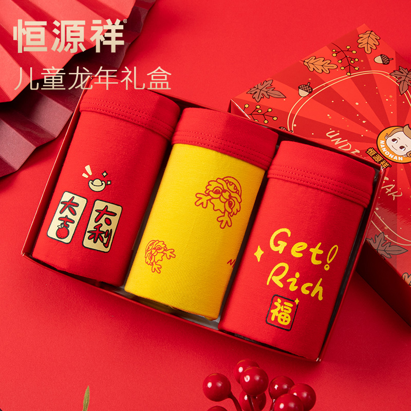 【产品名称:恒源祥男童红色内裤儿童龙年纯棉短裤12岁13本命年男孩平角裤礼物】