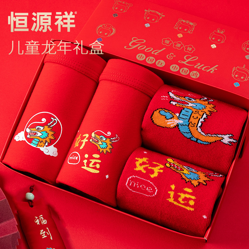 【产品名称:恒源祥男童女童红色内裤礼物儿童龙年纯棉短裤红袜子12岁13本命年】