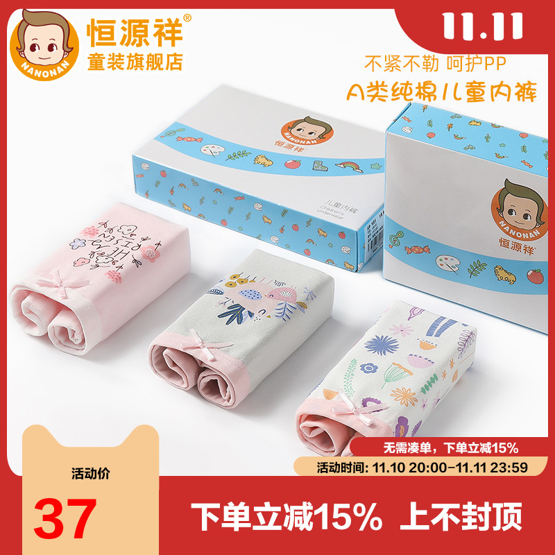 【产品名称:恒源祥儿童内裤女童A类纯棉平角裤中大童5-12女宝宝四角三角内裤】