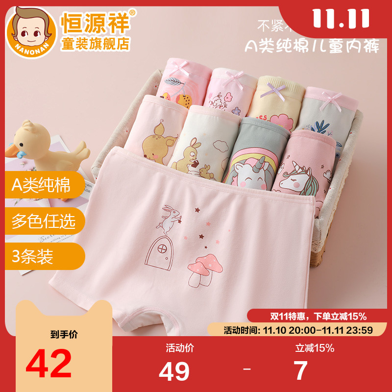 【产品名称:恒源祥女童内裤纯棉平角A类中大童女宝宝四角底裤不夹屁三角内裤】