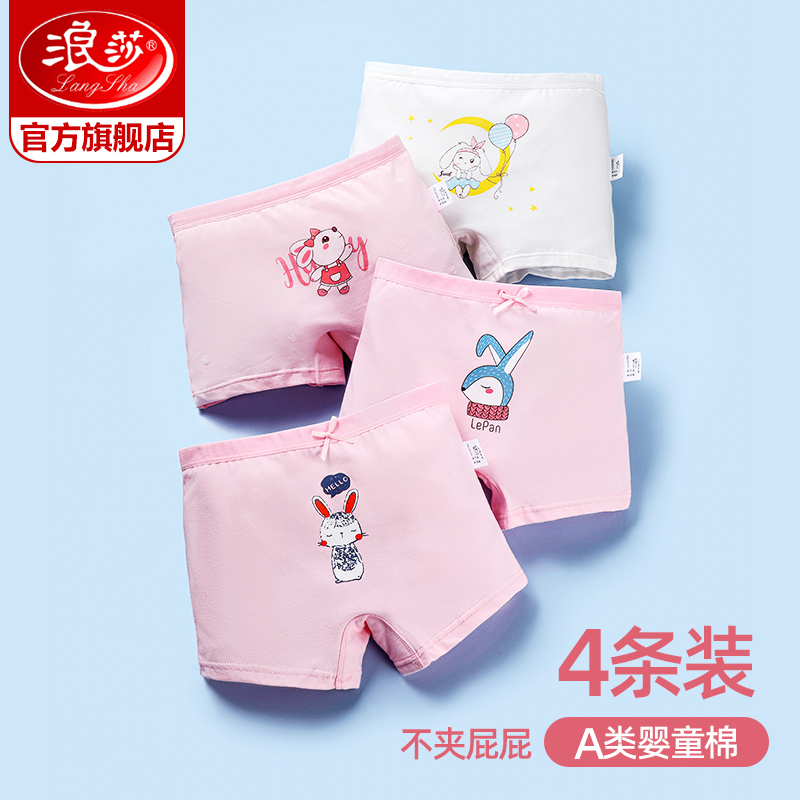 【产品名称:浪莎儿童内裤女童纯棉平角全棉透气中大童短裤小女孩100%四角裤ZL】