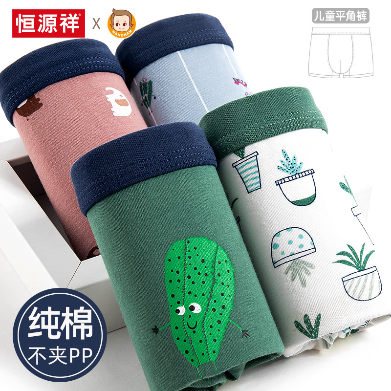 【产品名称:恒源祥男童内裤纯棉平角裤头短裤儿童大童13男15岁中童全棉四角裤】