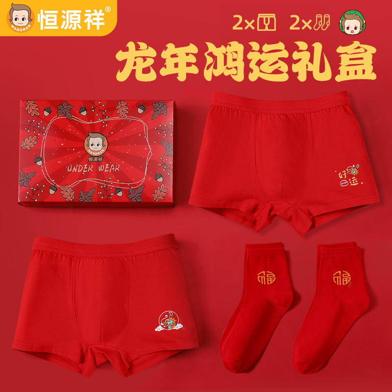 【产品名称:恒源祥龙年男童红色内裤纯棉儿童本命年短裤礼物12岁中大童平角裤】