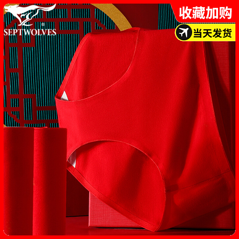 【产品名称:七匹狼本命年红色内裤女士纯棉无痕龙年结婚礼物新娘高腰抗菌短裤】
