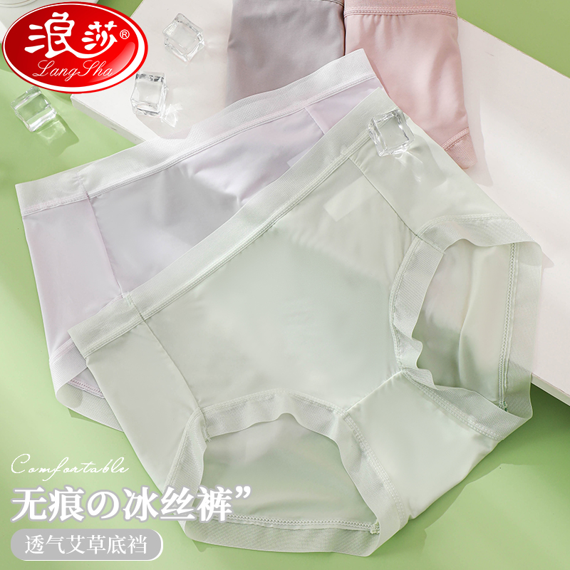 【产品名称:浪莎内裤女士夏天冰丝凉感透气无痕女生性感新款夏季薄款大码短裤】