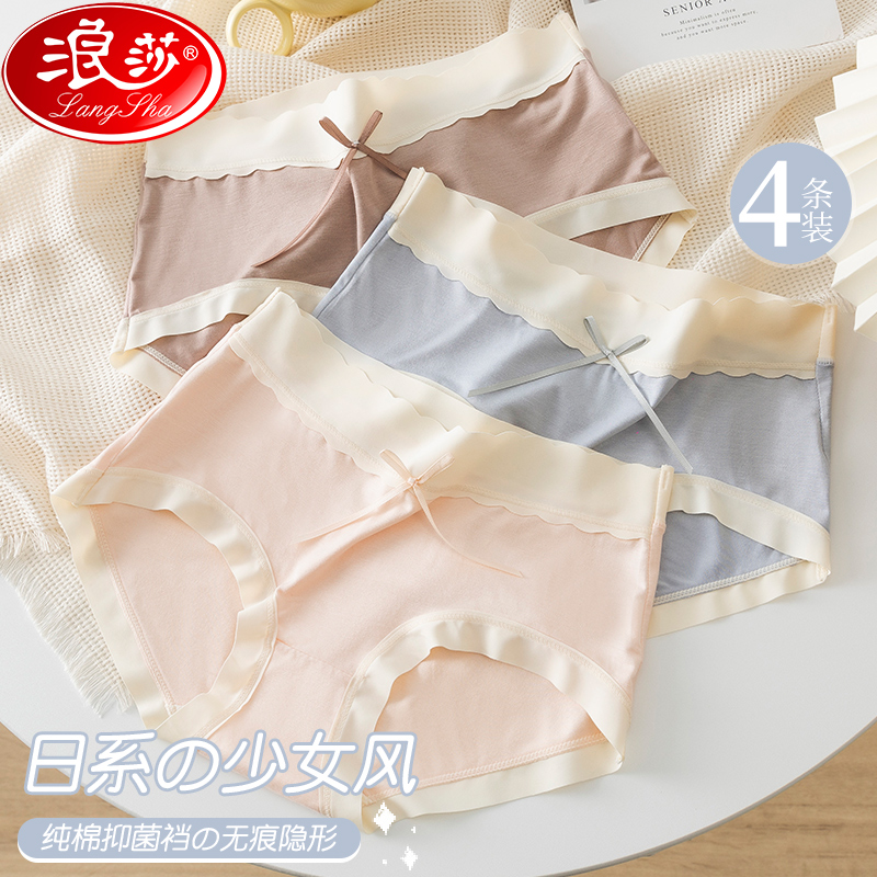 【产品名称:内裤女士纯棉无痕中腰日系新款少女生运动风抗菌三角短裤夏季款LS】